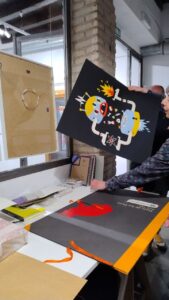 …en el taller de El Silo Eléctrico, ¡disfrutando de obras que fueron a Just Madrid, de Salva di Marte! y más. Fotografías Maribel Úbeda