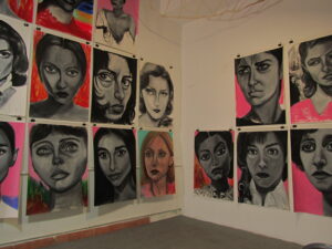 La exposición ha sido concebida para mostrar el máximo de obras de esta serie de más de 50 piezas y que sigue en expansión -a modo de work in progress-, mostrando así un mosaico de rostros, a modo de puzle a gran escala también (todos en blanco y negro con diferentes fondos, a color o no) que nuestro compañero de montaje excepcional, el profesor Adolfo Rosillo [Nota2], compara con un Mural al estilo postsovietico -ya que expone de igual manera a todas las actrices uniformándolas sea cual sea su estatus como actrices en su día, por así decirlo- y también, algo en lo que ambos coincidimos -aunque en otra vertiente de las diversas capas del conjunto-con la obra acumulativa de Gerhard Richter en «Atlas» (donde el artista colecciona diversas tipologías de imágenes pictóricas que le interesan desde el inicio de su carrera).